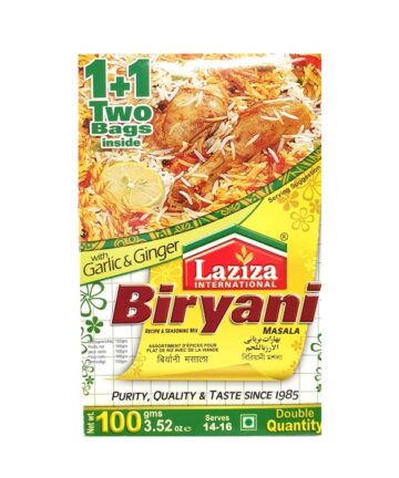 Make restaurant-style, aromatic biryani effortlessly with Laziza Biryani Masala 100g. This premium spice blend combines traditional South Asian spices to infuse rice and meat with rich flavor, vibrant color, and irresistible aroma. Perfect for chicken, mutton, beef, or vegetable biryani, it ensures a delicious, perfectly balanced dish every time. Convenient, hygienically packed, and easy to use for family meals or special occasions.