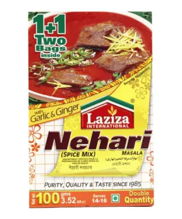 Cook traditional, flavorful Nihari at home with LAZIZA Nihari Masala. A perfect blend of premium spices, it brings out the authentic taste and aroma of this classic Pakistani dish. Ideal for slow-cooked beef, mutton, or chicken, it ensures rich, restaurant-quality flavors effortlessly.