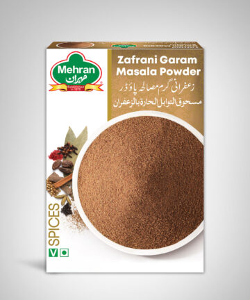 Mehran Zafrani Garam Masala 200g is a premium aromatic spice blend enriched with the luxurious essence of saffron. Made with high-quality ingredients including cumin, black pepper, cloves, cardamom, cinnamon, bay leaves, fennel, and star anise, this masala adds warmth, depth, and a rich fragrance to curries, rice dishes, and traditional recipes. Perfect for elevating both everyday meals and festive cooking.