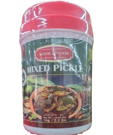 Noor and Noor Mixed Pickle is a flavorful blend of assorted fruits and vegetables preserved in aromatic spices and oil, delivering a tangy, spicy taste that perfectly complements everyday meals.