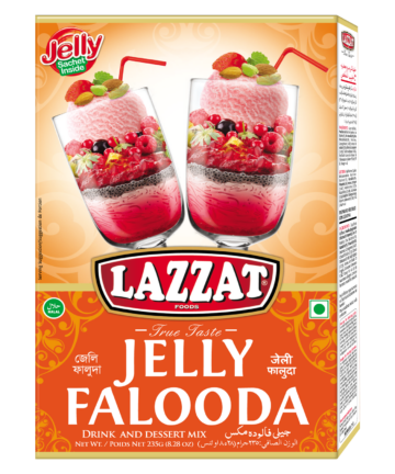 ₩4,800Create the classic, refreshing Indian dessert Falooda at home with Lazzat Jelly Falooda Dessert Mix. This convenient mix includes essential ingredients like falooda sev and basil seeds, making it quick and easy to prepare a sweet, creamy, and aromatic dessert. Simply add milk, your choice of syrup, and optional toppings for a delightful treat perfect for family gatherings, parties, or anytime indulgence.