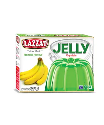 Indulge in the rich, velvety flavor of Vanilla Custard with our 250g Vanilla Custard Mix. This premium mix is specially crafted to create a smooth, creamy custard with the classic, aromatic taste of vanilla. Simply add milk and sugar, and you’ll have a delightful dessert ready in minutes. Perfect for serving chilled or warm, this Vanilla Custard is ideal for family gatherings, celebrations, or as a comforting treat anytime. Enhance with fruits, nuts, or chocolate for a personalized twist!Lazzat Crystal Banana Jelly 75g