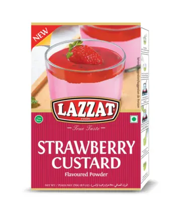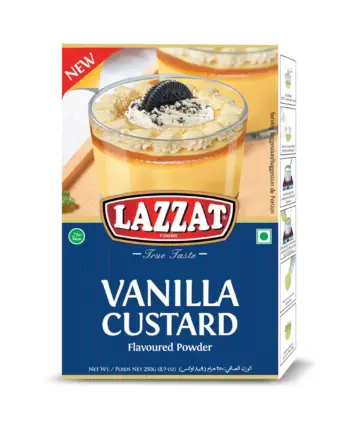 Delight in the sweet, fruity flavor of Strawberry Custard with our 250g Strawberry Custard Mix. This premium mix creates a rich, smooth custard infused with the refreshing taste of ripe strawberries. Simply add milk and sugar to the mix, and you’ll have a delectable dessert ready in no time. Whether served chilled or warm, this Strawberry Custard is perfect for family gatherings, celebrations, or as a satisfying sweet treat. Enhance with fresh strawberry slices or berries for an added touch of flavor!Lazzat Vanilla Custard 250g