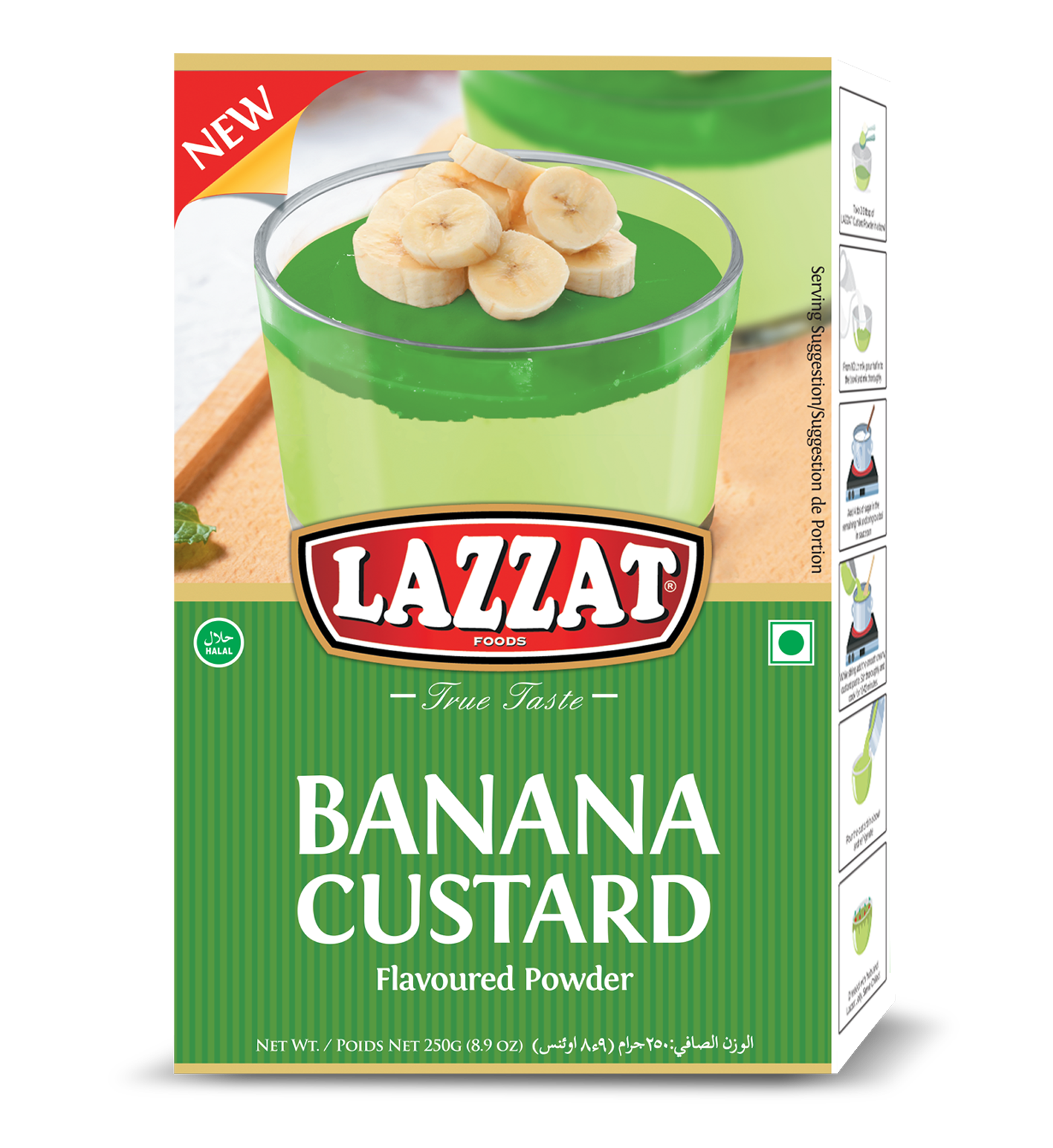 Lazzat Lazzat Custard Powder – Banana is a premium-quality custard mix designed to create smooth, creamy, and delicious banana-flavored desserts at home. Its rich banana aroma and vibrant taste make it ideal for fruit custard, layered trifles, puddings, cake fillings, and other sweet treats.