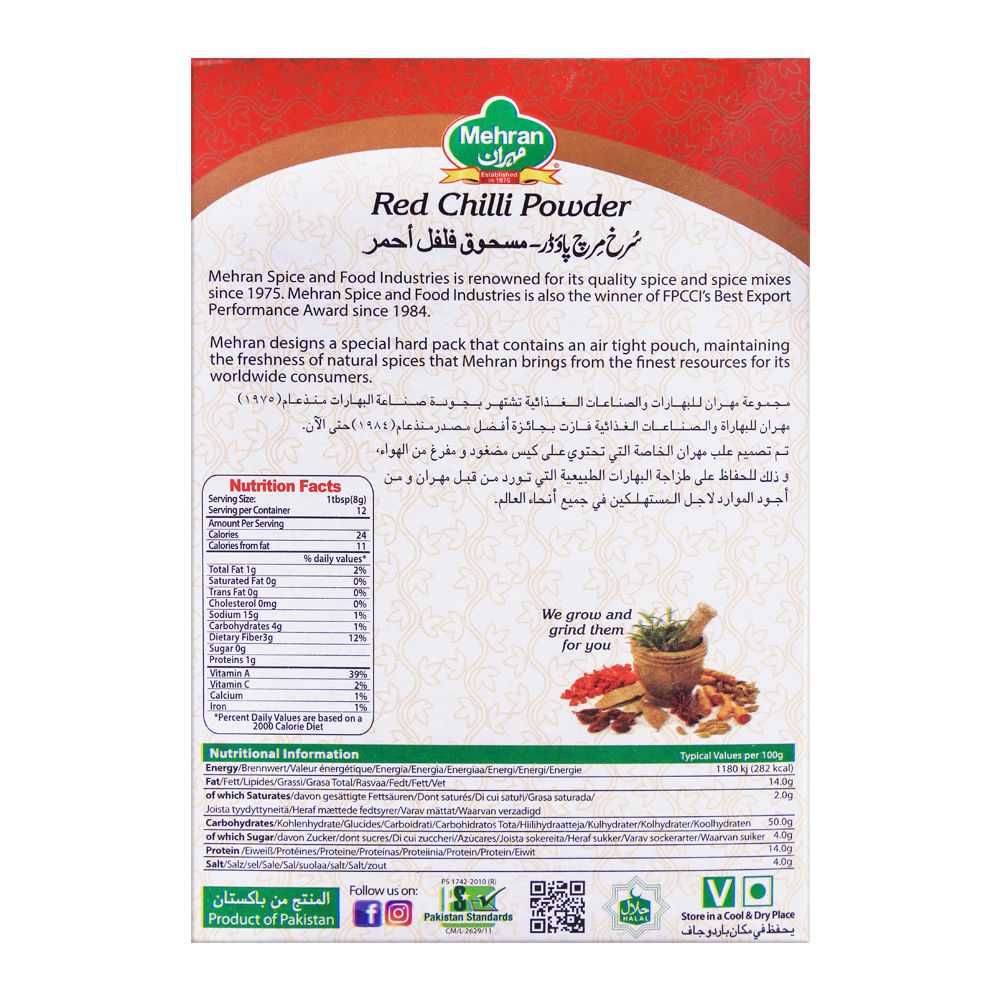 Packaged to preserve freshness, aroma, and quality, Mehran Red Chilli Powder 100g is an essential addition to every kitchen. Ideal for home cooks and professional chefs alike, it elevates everyday meals into rich, flavorful culinary experiences. Experience the authentic taste of premium red chilies in every dish with Mehran.
