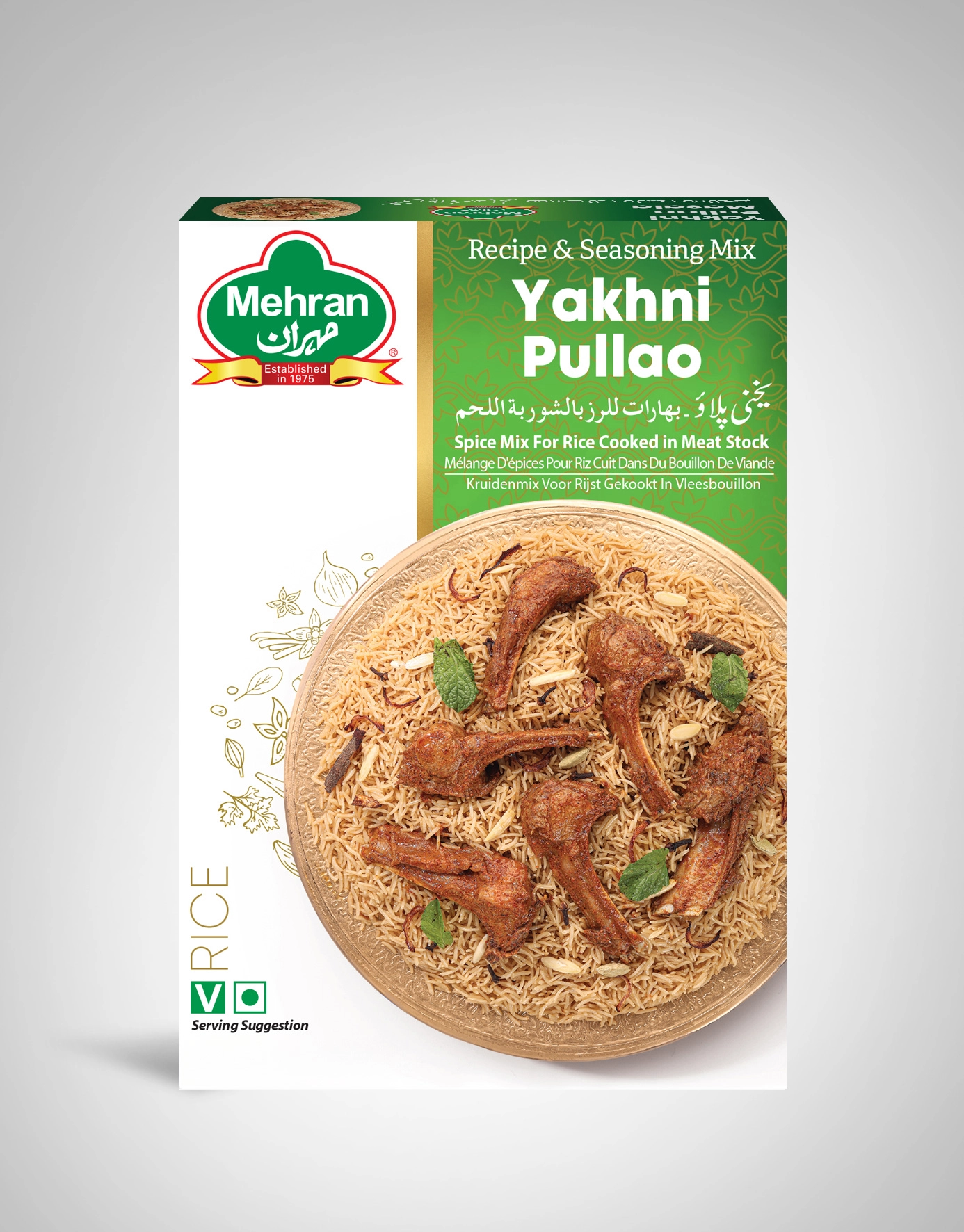 Ideal for family dinners, festive gatherings, or special weekend meals, Mehran Yakhni Pulao Masala offers convenience without compromising authenticity. Prepared under strict international hygiene and quality standards, Mehran guarantees freshness, purity, and superior taste in every pack.