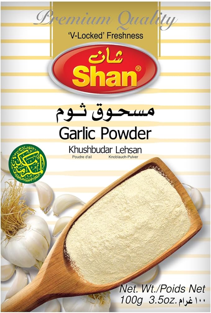 Shan Garlic Powder 100g from Shan Foods is a high-quality, finely ground garlic powder designed to add bold flavor and aroma to your dishes. Made from carefully selected garlic cloves, this powder offers consistent taste and freshness with every use.